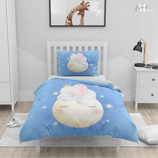 Unicorn Moon Duvet Cover Set W Pillow Cover, Blue Kids Animal 3D Quilt Cover, Single Double Queen King Size Doona Cover