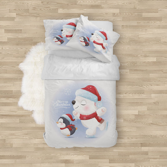 Santa Bear Duvet Cover Set W Pillowcases, Blue Kids Cartoon 3D Quilt Cover, 3Pc Single Double Queen King Size Doona Cover