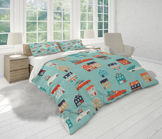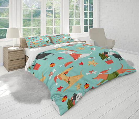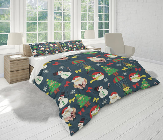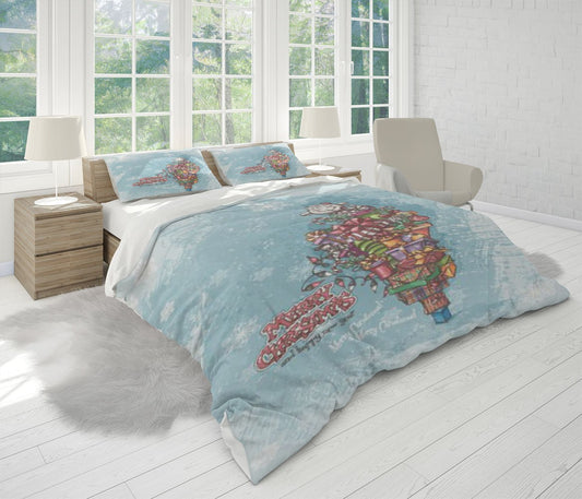 Santa Christmas Duvet Cover Set W Pillow Cover, Blue Kids Colorful 3D Quilt Cover, Single Double Queen King Size Doona Cover