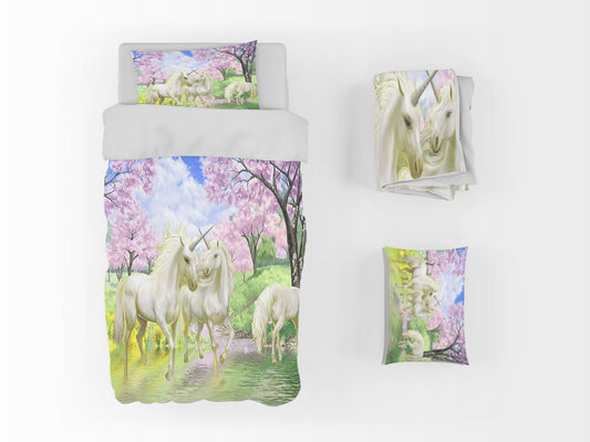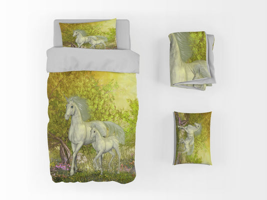 Unicorn Forest Duvet Cover Set W Pillow Cover, Green Kids Animal 3D Quilt Cover, Single Double Queen King Size Doona Cover