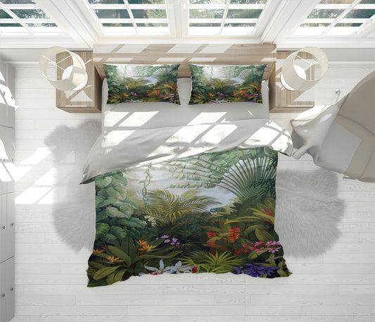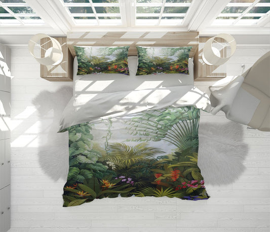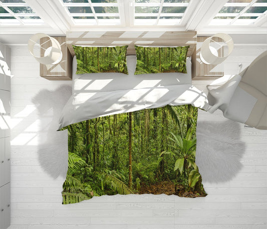 Tropical Rainforest Forest Jungle Green 3D Duvet Cover Set W Pillow Cover, Single Double Queen King Size, Printed Cotton Quilt Doona Cover