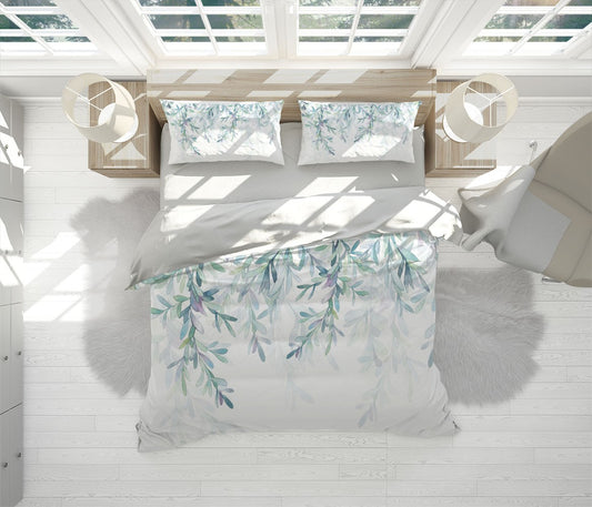 Mistletoe Branches Leaves Duvet Cover Set W Pillowcases, Green Texture Patterns 3D Quilt Cover, 3Pc Single Double Queen King Size Doona Cover