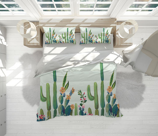 Cactus Desert Plant Duvet Cover Set w Pillow Cover, Green Kids Patterns 3D Quilt Cover, Single Double Queen King Size Doona Cover