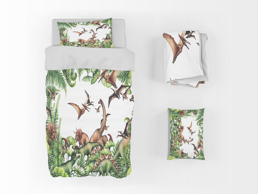 Dinosaurs Ferns Kids Green 3D Duvet Cover Set W Pillow Cover, Single Double Queen King Size, Printed Cotton Quilt Doona Cover 3 Pcs