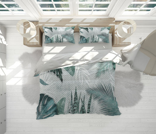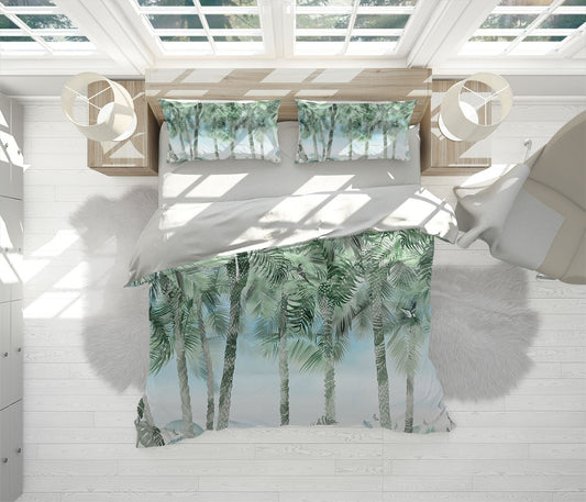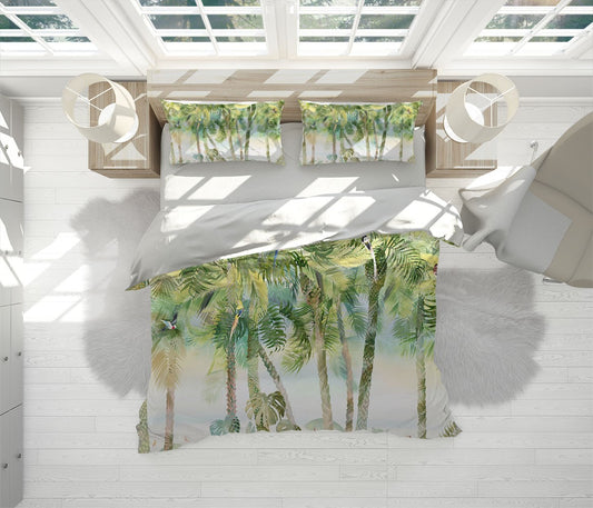 Palm Trees Duvet Cover Set W Pillow Cover, Green Floral Leaves 3D Quilt Cover, Single Double Queen King Size Doona Cover