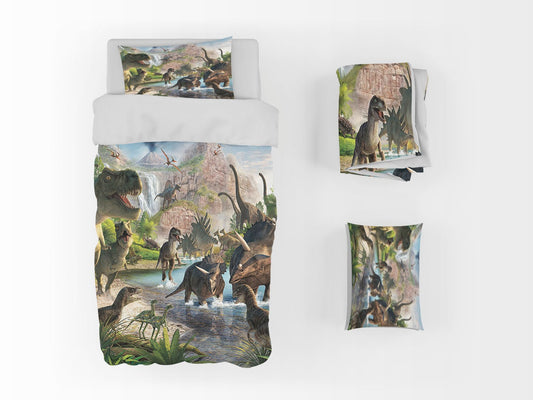 Jurassic Park World Duvet Cover Set w Pillow Cover, Green Kids Dinosaurs 3D Quilt Cover, Single Double Queen King Size Doona Cover
