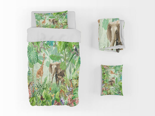 African Animals Kids Animal Green 3D Duvet Cover Set W Pillow Cover, Single Double Queen King Size, Printed Cotton Quilt Doona Cover 3 Pcs