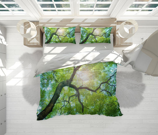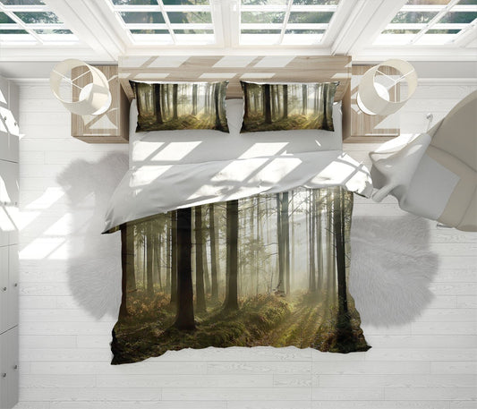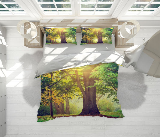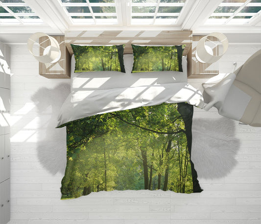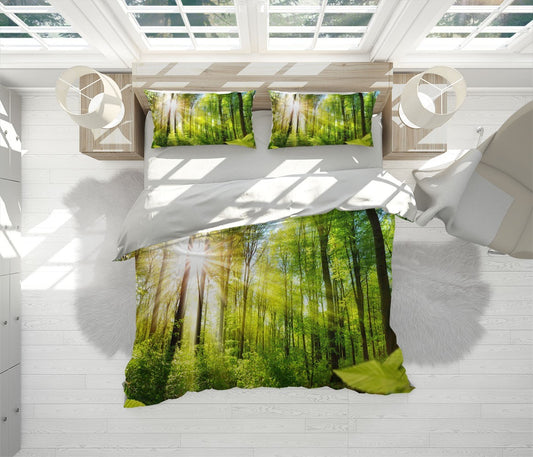 Sun Woods Duvet Cover Set W Pillow Cover, Green Forest Forest 3D Quilt Cover, Single Double Queen King Size Doona Cover