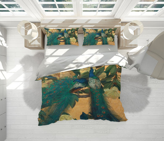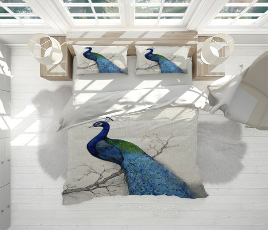 Peacock Close-Up Animals Green 3D Duvet Cover Set W Pillow Cover, Single Double Queen King Size, Printed Cotton Quilt Doona Cover 3 Pcs