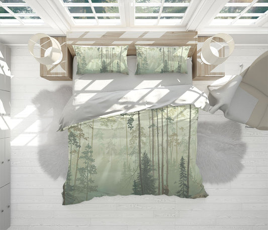 Misty Pines Duvet Cover Set W Pillow Cover, Green Forest Seasons 3D Quilt Cover, Single Double Queen King Size Doona Cover
