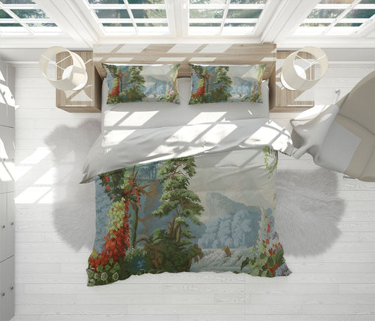 Forest Mountains Floral Leaves Green 3D Duvet Cover Set W Pillow Cover, Single Double Queen King Size, Printed Cotton Quilt Doona Cover