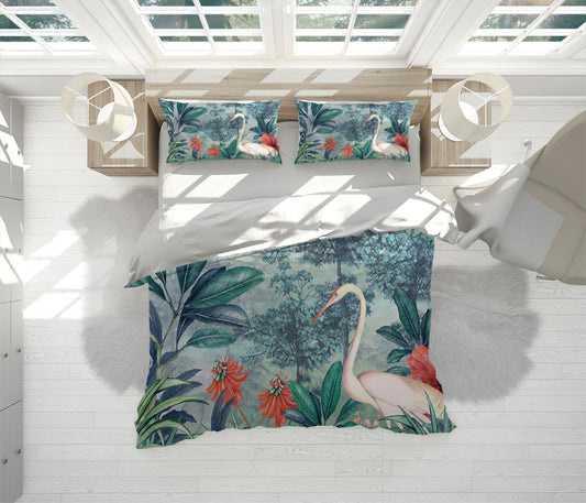 Flamingoes Animals Birds Green 3D Duvet Cover Set W Pillow Cover, Single Double Queen King Size, Printed Cotton Quilt Doona Cover 3 Pcs