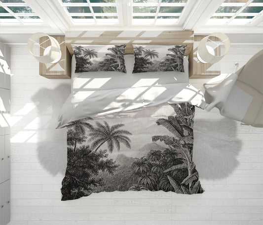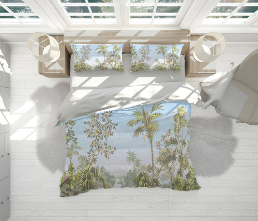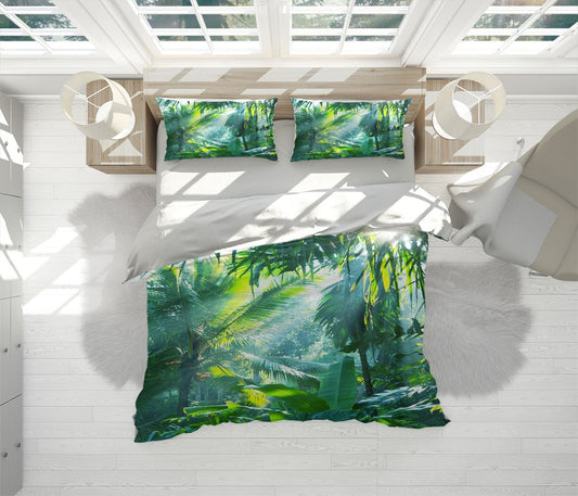Palm Tree Forest Jungle Green 3D Duvet Cover Set W Pillow Cover, Single Double Queen King Size, Printed Cotton Quilt Doona Cover 3 Pcs