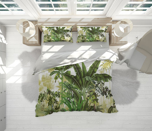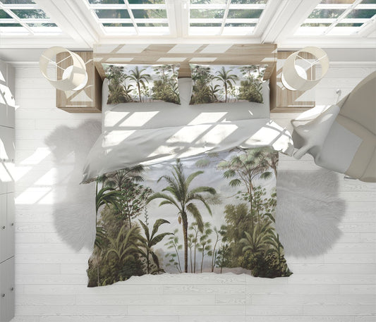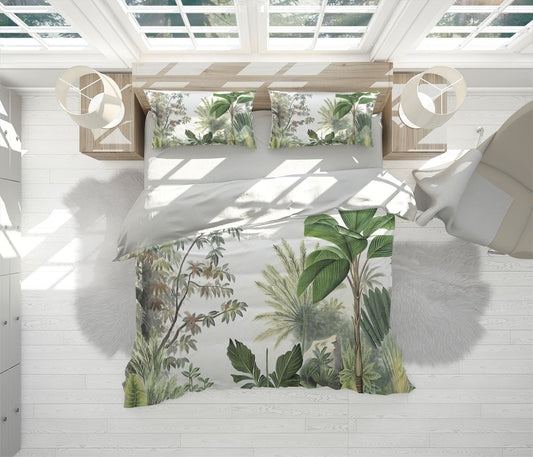 Tropical Trees Forest Jungle Green 3D Duvet Cover Set W Pillow Cover, Single Double Queen King Size, Printed Cotton Quilt Doona Cover 3 Pcs