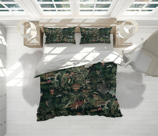 Tropical Jungle Duvet Cover Set W Pillow Cover, Green Forest Jungle 3D Quilt Cover, Single Double Queen King Size Doona Cover