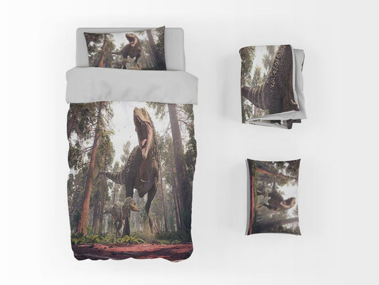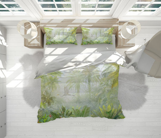 Dinosaurs Forest Duvet Cover Set W Pillow Cover, Green Animals Wild Animals 3D Quilt Cover, Single Double Queen King Size Doona Cover