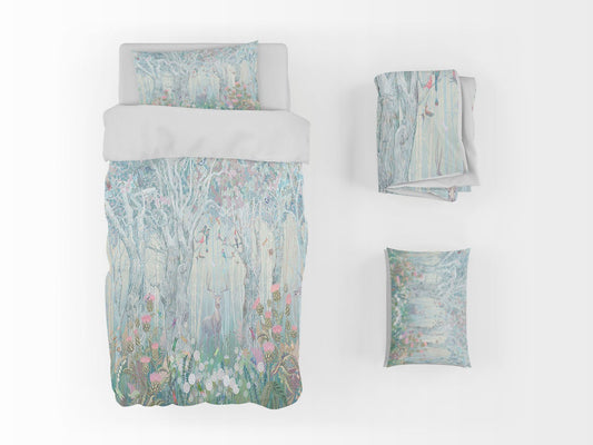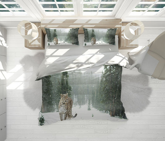 Snowy Forest Duvet Cover Set W Pillow Cover, Green Forest Plant 3D Quilt Cover, Single Double Queen King Size Doona Cover