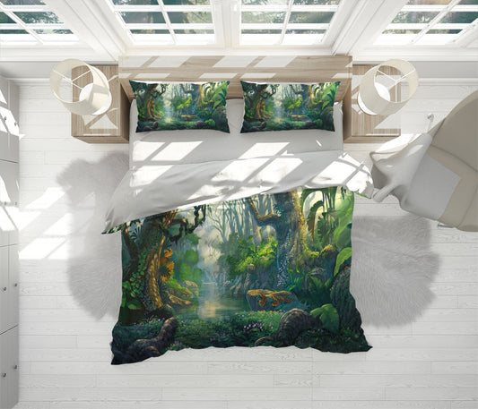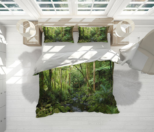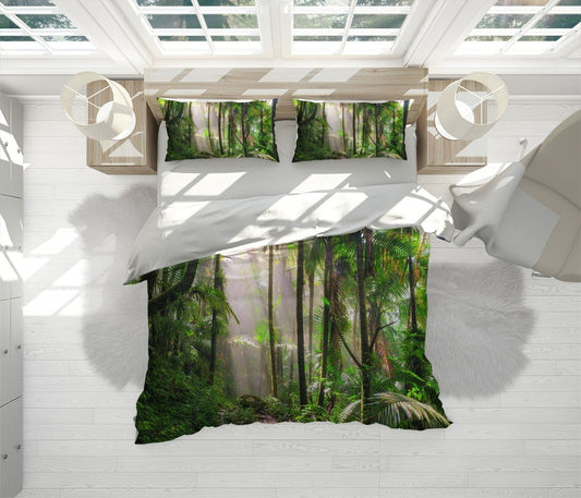 Rainforest Morning Forest Jungle Green 3D Duvet Cover Set W Pillow Cover, Single Double Queen King Size, Printed Cotton Quilt Doona Cover