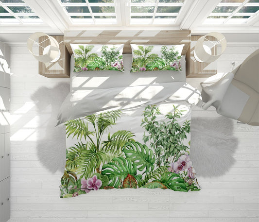 Tropical Flowers Duvet Cover Set W Pillow Cover, Green Floral Patterns 3D Quilt Cover, Single Double Queen King Size Doona Cover