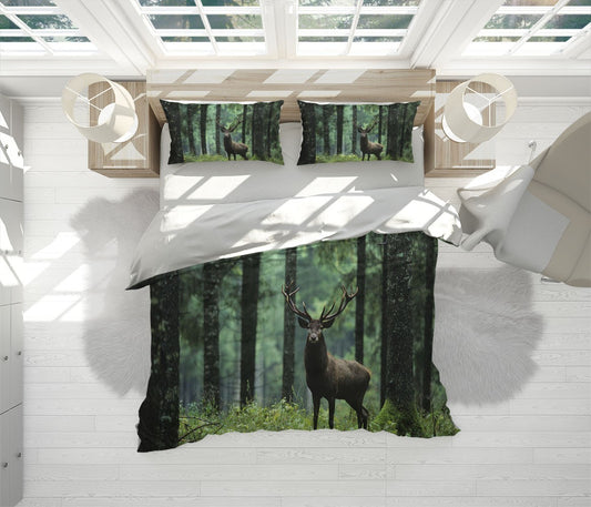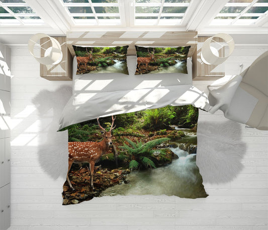 Deer Creek Duvet Cover Set W Pillow Cover, Green Animals Wild Animals 3D Quilt Cover, Single Double Queen King Size Doona Cover