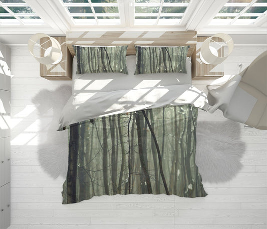 Misty Forest Plant Green 3D Duvet Cover Set W Pillow Cover, Single Double Queen King Size, Printed Cotton Quilt Doona Cover 3 Pcs