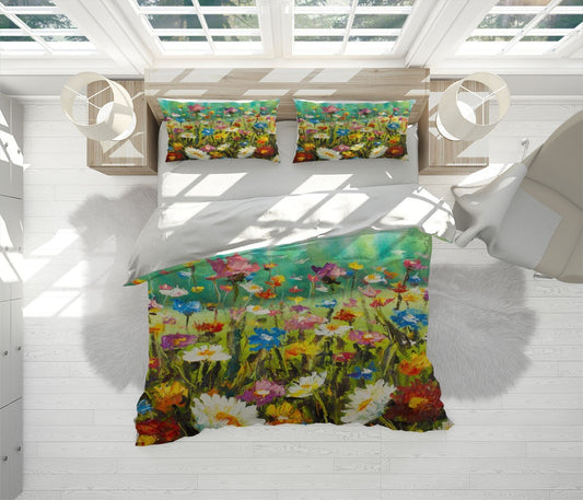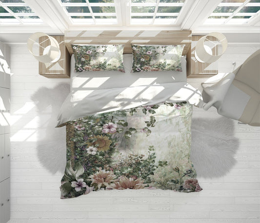 Forest Of Flowers Duvet Cover Set W Pillow Cover, Green Floral Flowers 3D Quilt Cover, Single Double Queen King Size Doona Cover