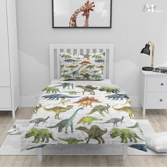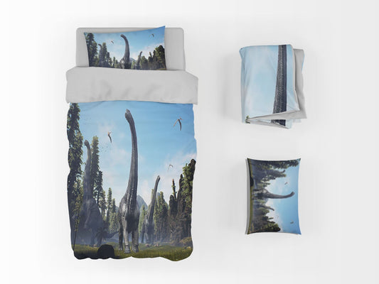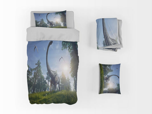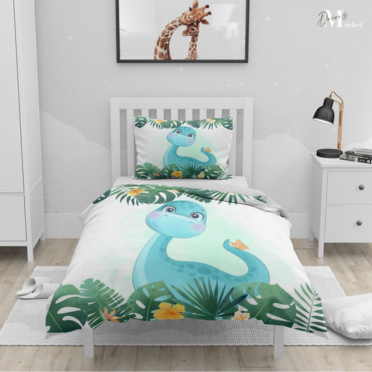 Supersaurus Dino Duvet Cover Set W Pillow Cover, Green Kids Dinosaurs 3D Quilt Cover, Single Double Queen King Size Doona Cover