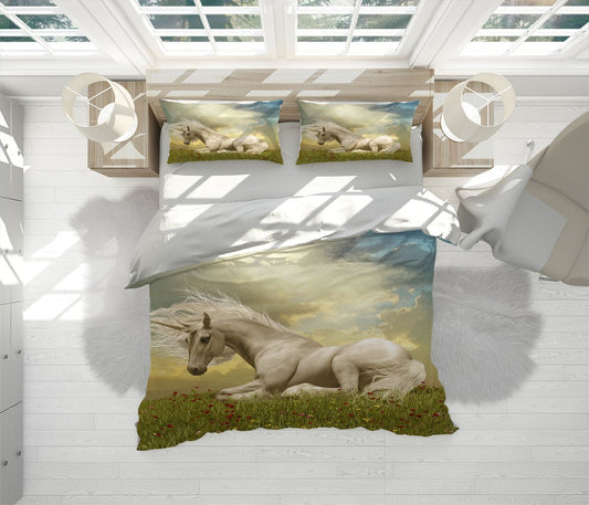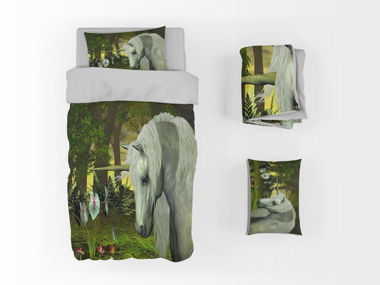 Unicorn Forest Duvet Cover Set W Pillow Cover, Green Animals Fantasy Animals 3D Quilt Cover, Single Double Queen King Size Doona Cover