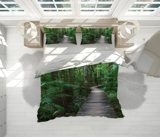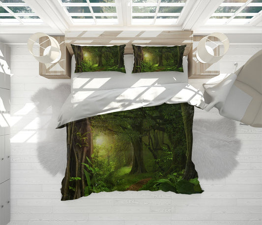 Woods Trail Duvet Cover Set W Pillow Cover, Green Forest Forest 3D Quilt Cover, Single Double Queen King Size Doona Cover