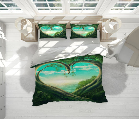 Fujiman Sea Duvet Cover Set W Pillow Cover, Green Nature Landscape 3D Quilt Cover, Single Double Queen King Size Doona Cover