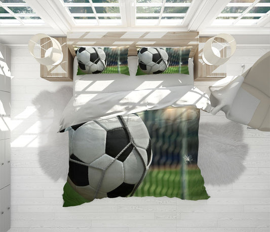 Soccer Goal Duvet Cover Set W Pillow Cover, Green Hobby Sports 3D Quilt Cover, Single Double Queen King Size Doona Cover