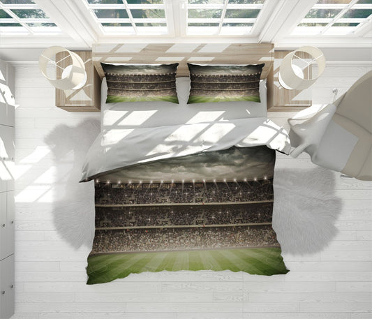 Stadium Football Duvet Cover Set W Pillow Cover, Green Hobby Sports 3D Quilt Cover, Single Double Queen King Size Doona Cover