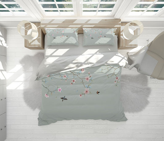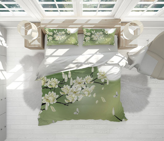 Blossom Branches Floral Flowers Green 3D Duvet Cover Set W Pillow Cover, Single Double Queen King Size, Printed Cotton Quilt Doona Cover