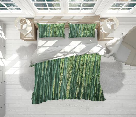 Bamboo Forest Duvet Cover Set W Pillow Cover, Green Forest Plant 3D Quilt Cover, Single Double Queen King Size Doona Cover