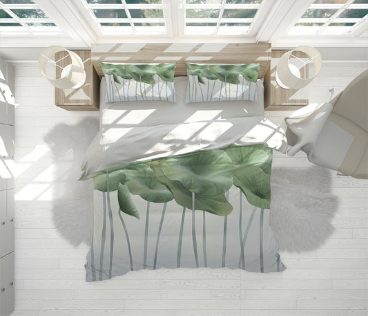 Lotus Leaves Duvet Cover Set W Pillow Cover, Green Art Chinoiserie 3D Quilt Cover, Single Double Queen King Size Doona Cover