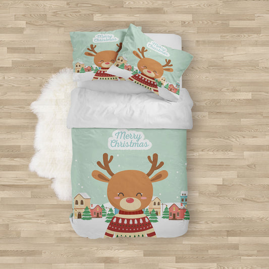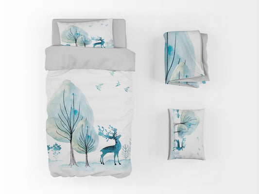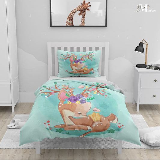 Bambi Deer Duvet Cover Set w Pillow Cover, Green Kids Animal 3D Quilt Cover, Single Double Queen King Size Doona Cover