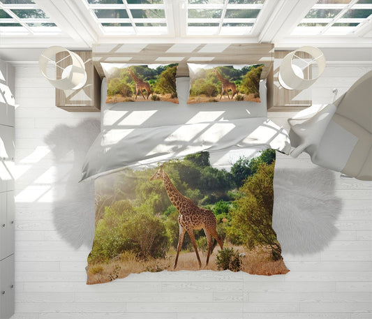 Giraffe Bush Duvet Cover Set W Pillow Cover, Green Animals Wild Animals 3D Quilt Cover, Single Double Queen King Size Doona Cover