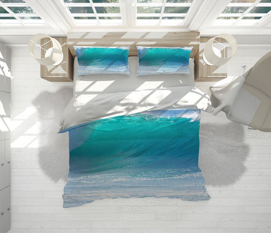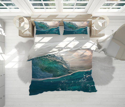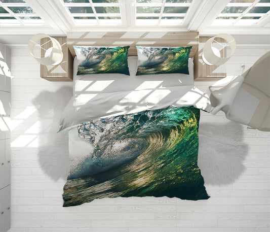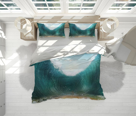 Huge Wave Duvet Cover Set W Pillow Cover, Green Beach Wave 3D Quilt Cover, Single Double Queen King Size Doona Cover
