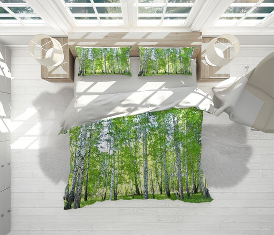 Spring Birch Trees Duvet Cover Set W Pillow Cover, Green Forest Seasons 3D Quilt Cover, Single Double Queen King Size Doona Cover