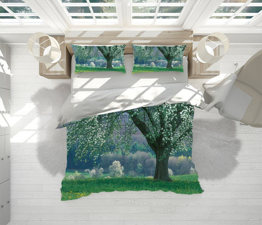 Grass Tree Duvet Cover Set W Pillow Cover, Green Art Traditional 3D Quilt Cover, Single Double Queen King Size Doona Cover