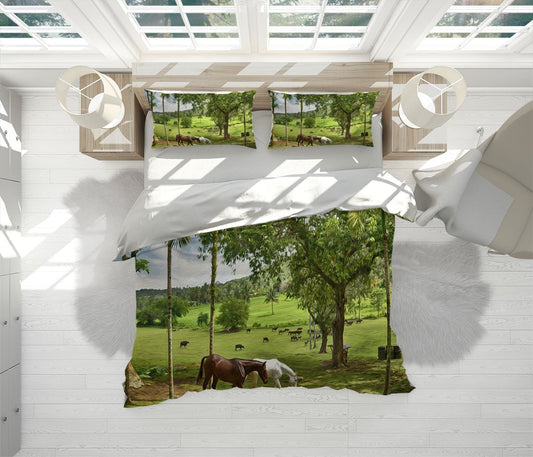 Hourse Grass Duvet Cover Set W Pillow Cover, Green Nature Landscape 3D Quilt Cover, Single Double Queen King Size Doona Cover