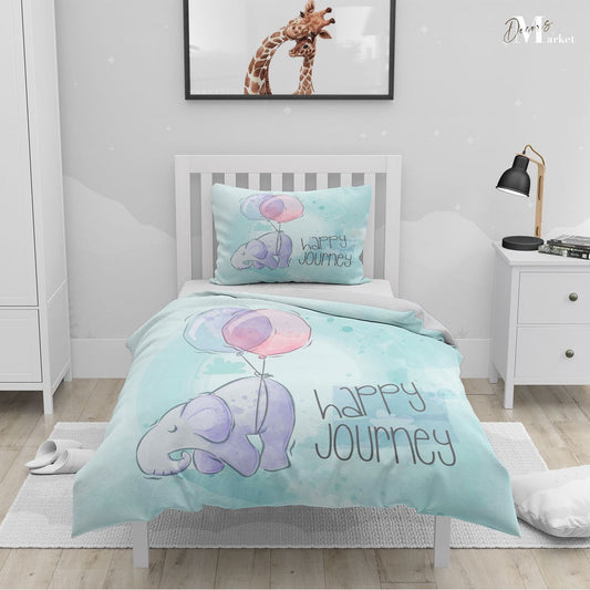 Balloon Elephant Duvet Cover Set w Pillow Cover, Green Kids Cartoon 3D Quilt Cover, Single Double Queen King Size Doona Cover