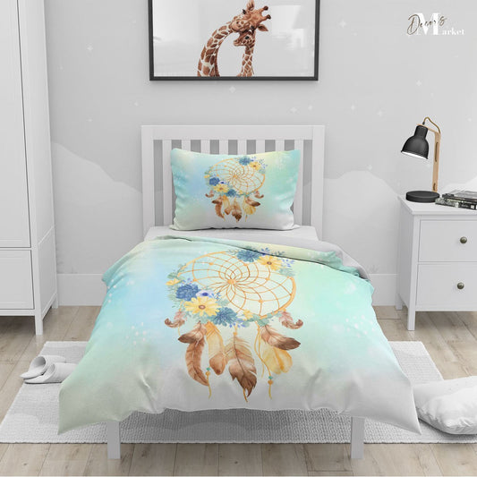 Dreamcatcher Dream Duvet Cover Set w Pillow Cover, Green Kids Fantasy 3D Quilt Cover, Single Double Queen King Size Doona Cover