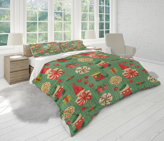 Winter Holiday Candies Duvet Cover Set W Pillowcases, Green Texture Patterns 3D Quilt Cover, 3Pc Single Double Queen King Size Doona Cover
