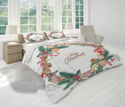 Christmas Wreath Decor Duvet Cover Set W Pillowcases, Green Kids Art For Kids 3D Quilt Cover, 3Pc Single Double Queen King Size Doona Cover