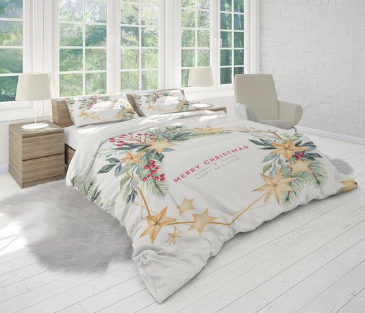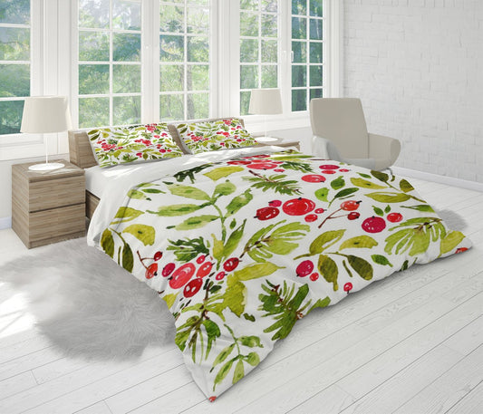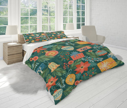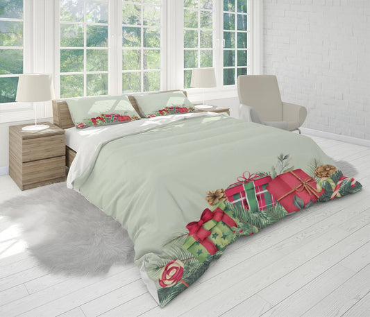 Merry Christmas Gift Duvet Cover Set W Pillowcases, Green Floral Flowers 3D Quilt Cover, 3Pc Single Double Queen King Size Doona Cover