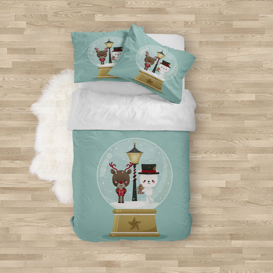 Snowman Bear Duvet Cover Set W Pillowcases, Green Kids Cartoon 3D Quilt Cover, 3Pc Single Double Queen King Size Doona Cover