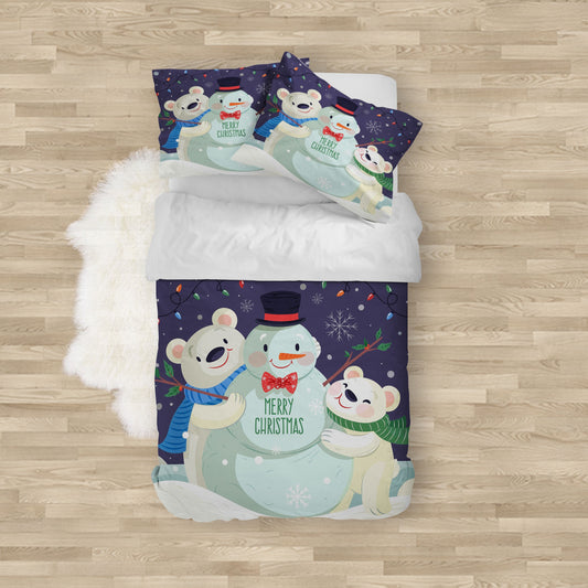 Snowman Bear Duvet Cover Set W Pillowcases, Green Kids Patterns 3D Quilt Cover, 3Pc Single Double Queen King Size Doona Cover