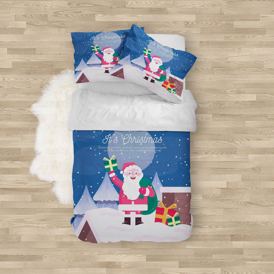 Santa Snowman Christmas Tree Duvet Cover Set W Pillowcases, Green Kids Patterns 3D Quilt Cover, 3Pc Single Double Queen King Size Doona Cover
