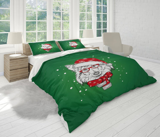 Christmas Snow Wolf Duvet Cover Set W Pillowcases, Green Art Pop Art 3D Quilt Cover, 3Pc Single Double Queen King Size Doona Cover